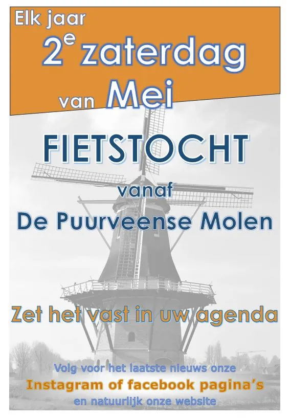 Bij de Puurveense Molen in Kootwijkerbroek organiseren ze sinds 2016 een leuke fietstocht van ongeveer 45 kilometer. Het doel ervan is een leuke dag voor jong en oud. En veel herkenbaarheid en wat leuke inkomsten voor de molen zelf.